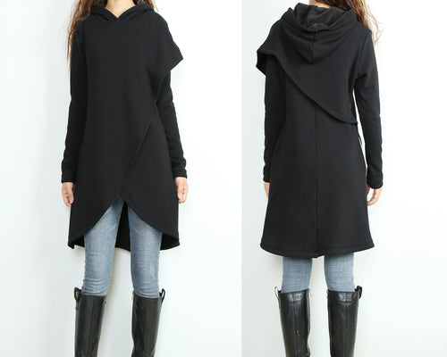 Oversized hoodie for women, asymmetrical thick cotton fleece hoodie, plus size sweatshirt, long tops, casual customized hoodie(Y2076)