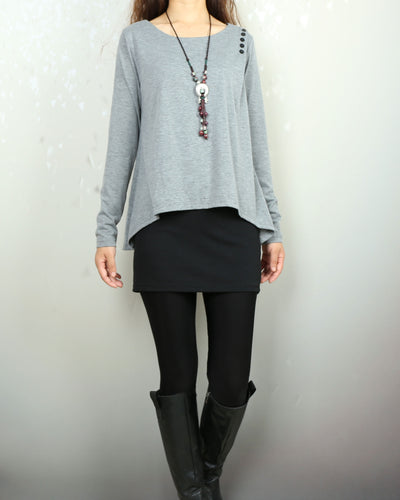 Women's false 2 pieces top/asymmetrical tunic dress/cotton tunic top/plus size top/oversized t-shirt/customized dress (Y1919)