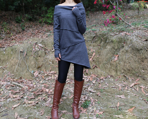 Women's cotton tunic top/cowl neck tunic dress with thumb hole/Asymmetrical tunic/oversized tunic top for leggings (Y1656)