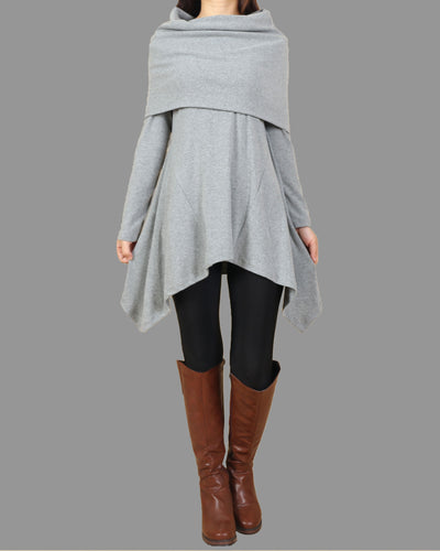 Women's cotton tunic dress/shawl collar top/gray cotton dress/plus size t-shirt/oversized top/casual tunic top/maternity dress/asymmetrical t-shirt (Y1536)